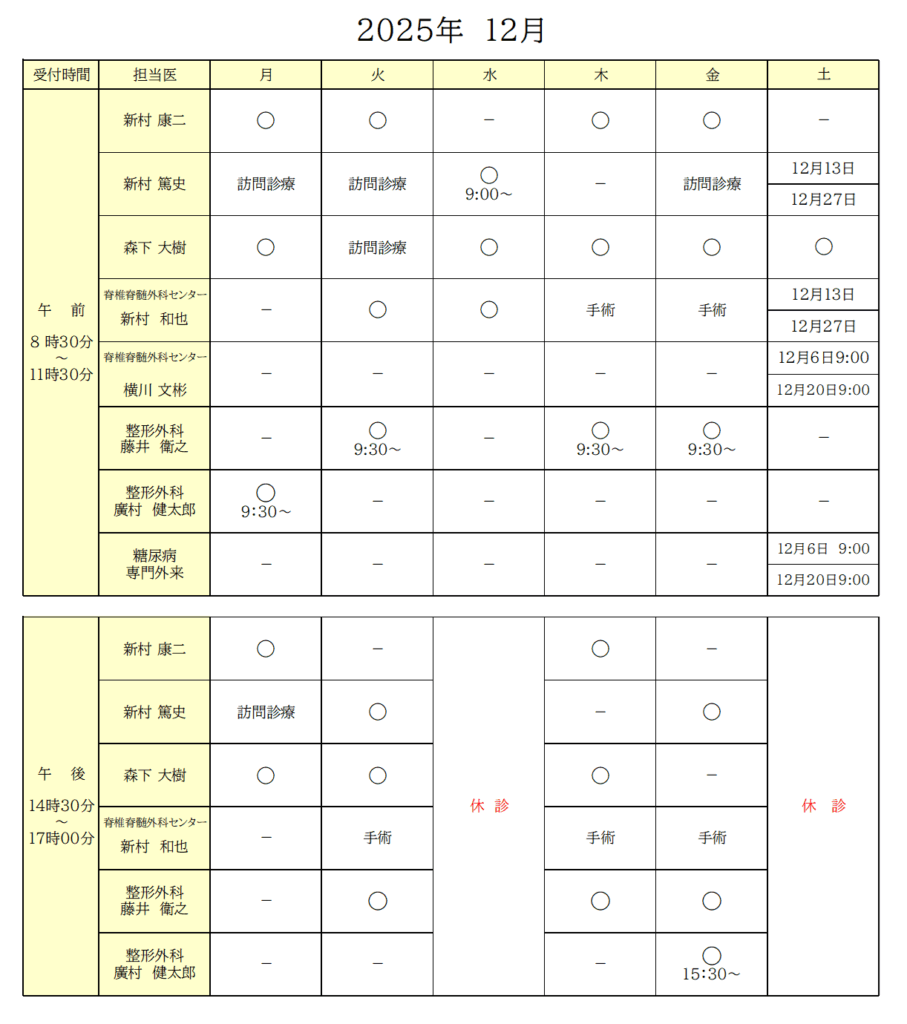 2025年12月 外来担当医のお知らせ 2025 11/27 外来担当医 2025年11月26日2025年11月27日 外来担当医 よかったらシェアしてね! URLをコピーしました! URLをコピーしました!